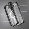 Vedenpitävä kotelo iPhone 14 Plussalle, jossa sisäänrakennetut MagSafe-magneetit. Kotelo on rakennettu kestämään vaativia olosuhteita ja siinä on sisäänrakennettu näytönsuoja täydellisen suojan takaamiseksi.