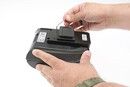 3. Aseta tulostin telineen viereen, työnnä sitä sisään, kunnes kuulet sen napsahtavan. Vapauta tulostin painamalla lukitusvipua sisään työntämällä tulostinta sivulle, kunnes se vapautuu.