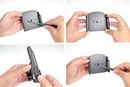 Määritä pitimen leveys matkapuhelimesi mukaan ennen pitimen käyttöä, ja se pitää puhelinta tukevasti pystyssä, mikä antaa sinulle parhaan mahdollisen kattavuuden matkapuhelimelle. Pidikkeessä on mukava ja huomaamaton sign joka sulautuu hyvin auton sisustukseen. Voit liittää esimerkiksi kannettavan handsfree-laitteen tai latauskaapelin puhelimeen, kun se on paikallaan pidikkeessä.