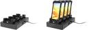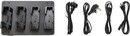 Latausasema neljälle laitteelle. Mukana virtajohto ja pistokeadapteri. Lataus pogo pinnillä.
