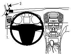 2. Paina kiinnikkeen kulmikas reuna rakoon ja kiinnitä A-pylvääseen.