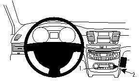 Puhdista alue, johon ProClip-kiinnike asennetaan, mukana toimitetulla märkäpyyhkeellä. Poista suojamuovi telineen kaksipuoleisella teipillä. Paina kannatimen taitettu vasen osa ohjauspaneelin ja keskikonsolin rungon väliin.