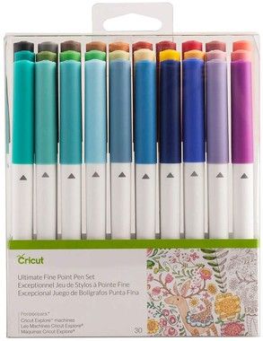 tarvikkeet on suunniteltu tuottamaan teräviä viivoja naarmuuntumatta tai leviämättä paperille. Valitse klassisista väreistä selkeää tekstiä varten tai metallinhohtoisista ja kimaltelevista kynistä koristeellisempia tehosteita varten. Yhdistä Cricut-