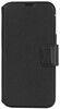 Kotelo sulkeutuu magneettisella läpällä. Kotelossa on korotettu reuna näytön ja kameran ympärillä, mikä antaa puhelimelle paremman suojan.