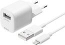 Kompakti USB-A-seinälaturi, joka sisältää irrotettavan USB-A-Lightning-kaapelin esim. iPhone ja iPad lataamiseen.