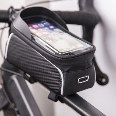 Kosketusta johtavan kalvon ansiosta voit ohjata kosketusnäyttöä poistamatta puhelinta pussista. Tuotetta voi kiinnittää polkupyörän lisäksi myös vaunuihin, juoksumatolle ja moottoripyörän tai skootterin ohjaustankoon, mikä takaa turvallisuuden heijastavien elementtien ansiosta.