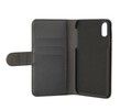 Lompakon suojakotelo iPhone Xs Max -tuotteille, jossa nahkaverhoilu, jossa iPhone kiinnitetty lompakkoon integroidussa suojassa irrotettavassa muovikotelossa. Kuori kiinnitetään paikallaan sisäänrakennetulla magneettilla.