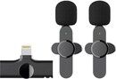 Kaksi langatonta mikrofonia, jotka yhdistetään suoraan iPhoneesi tai iPadiisi Lightning-liitännällä. Tämä hyttysmikrofoni sopii täydellisesti Instagram- tai TikTok-sisältöjen luomiseen!
