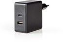 Nedis Dual Wall Charger 57W -laturilla voit ladata älypuhelimia, tabletteja, Nintendo Switchiä ja monia muita USB-C-laitteita ilman pöytäkonetta tai kannettavaa tietokonetta. Edistyksellinen tehonsäätötekniikka Power Delivery tarjoaa nopeamman latauksen korkeammilla jännitteillä. Smart Charge USB-A 3.0 -liitännän avulla voit ladata yhteensopivia laitteita samanaikaisesti.