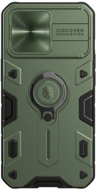 Nillkin CamShield Armor Case iPhone 13 Pro Max on erittäin kestävä kotelo, jossa on sisäänrakennettu jalusta. Jalusta on rengas, jota voidaan kääntää 360 °.