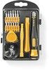 17-osainen työkalusarja tietokoneiden, älypuhelimien ja muun elektroniikan korjaamiseen.