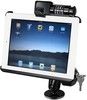 RAM-B-138-AP8LU koostuu (2 määrästä) halkaisijaltaan 2,5 tuuman pyöreästä alustasta, joissa on yleinen AMPS-reikäkuvio, kaksoiskantavarret, lukitusnuppi ja Latch-N-Lock dell teline Apple iPad 4:lle, iPad 3:lle, iPad 2:lle. ja iPad 1. Telineessä sign aten RAM 1" halkaisijaltaan kumipallo- ja kantajärjestelmä, jossa on säätöpisteet kaksoiskantavarren molemmissa päissä. Tämä mahdollistaa lähes äärettömän säädön ja täydelliset katselukulmat. Telineessä on valitsinyhdistelmälukko varkaudenesto sekä 4 kiinnityskohtaa, joissa on valmiiksi poratut reiät takana. Lukituspainike kiinnittyy kaksoiskantavarteen yhdistettynä ohjauspyörän yhdistelmälukon kanssa, mikä luo äärimmäisen varkaudeneston kiinnityksen iPad .