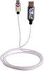 Virtaava valotehoste aktivoituu, kun kaapeli on kytketty virtalähteeseen ja yhteensopiva laite on kytketty latausta varten. Virtaava valotehoste on sarja kirkkaita LED-valoja, jotka kulkevat kaapelia pitkin ja liikkuvat virtaavassa kuviossa.