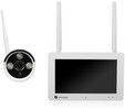 Setti muodostaa yhteyden Wi-Fi-verkkoon, joka yhdistää langattomasti kameran ja näytön. Kameraa voidaan käyttää avoimella alueella jopa 250 metrin päässä näytöstä. Liitä näyttö reitittimeen mukana tulevalla verkkokaapelilla. Lisäksi sarja voidaan laajentaa jopa 4 kameraan. Useita kameroita käyttämällä voit pitää silmällä ajotieltäsi, puutarhaasi, autotalliasi ja olohuonettasi.