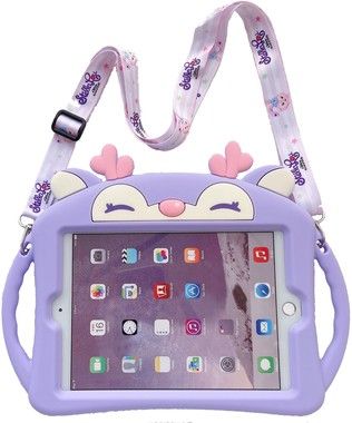 Kodikas iPad mini 5/4 kotelo lapsille (tai lapsenmielisille). Laukku purppuranpunaisella puhtaalla eri pehmeällä silikonilla, kauniin violetin värinen ja säädettävä kantohihna.