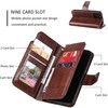 Hieno keinonahkainen lompakkokotelo iPhone 14 Plusille. Kotelossa on 9 korttipaikkaa ja 3 setelitaskua.