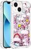 Pehmeä, suojaava kuori, jossa on nestemäistä glitteriä takana. Jos siirrät puhelinta, glitter liikkuu.