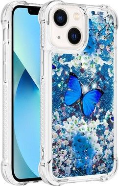 Pehmeä, suojaava kuori, jonka takana on nestemäistä glitteriä . Jos kosketat puhelinta, kimallus liikkuu.