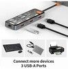 Keskitin, jossa on USB-C-liitäntä, jotta saat nopeimman mahdollisen dataliikenteen. Avoin, läpinäkyvä muotoilu.