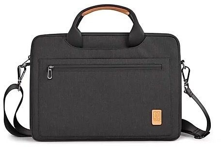 Ohut tietokonelaukku, jossa nahkaiset yksityiskohdat. Erittäin tyylikäs ja mukava käyttää. Vetoketjullinen ngs .